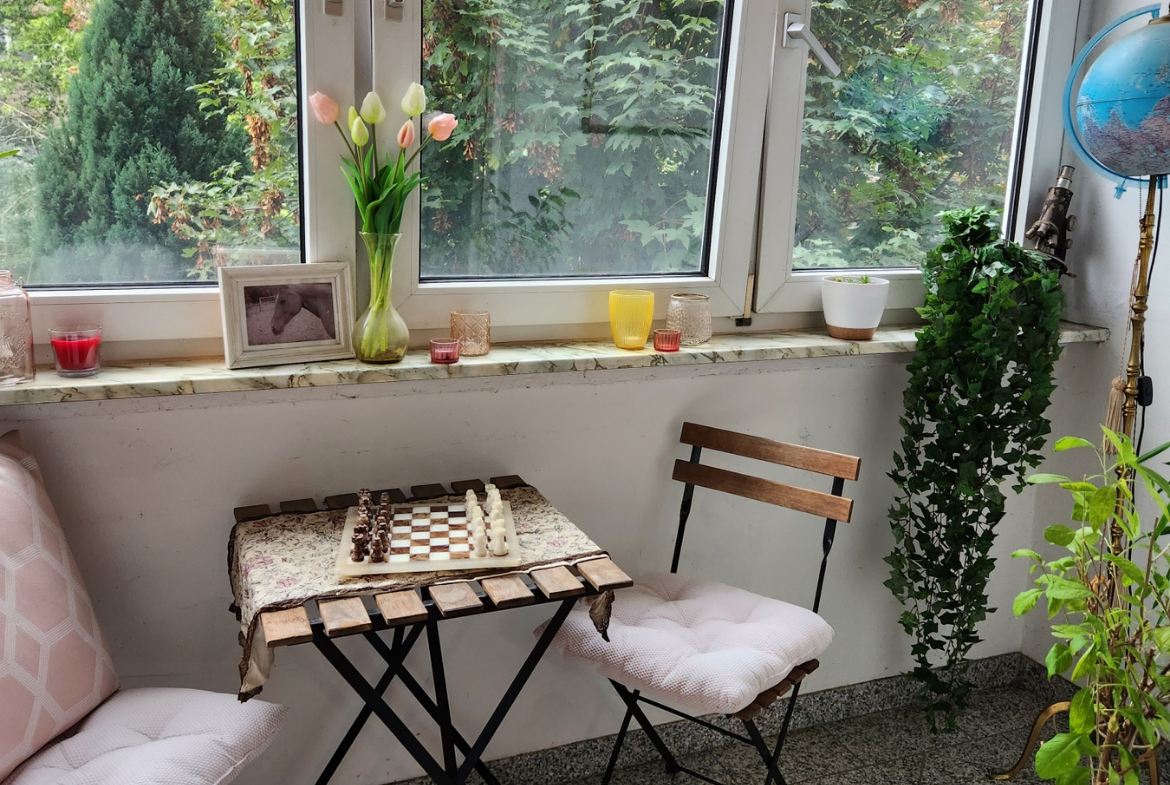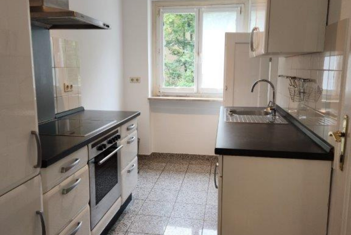 Die 3 Zi. Mietwohnung befindet sich im 1. OG eines gepflegten Mehrfamilienhauses mit insgesamt 7 Wohneinheiten. Die Wohnung besitzt einen Wintergarten mit Blick ins Grüne. Zur Wohnung gehören ein Kellerraum und eine Garage im Hinterhof des Gebäudes, die mit € 80,-/mtl. noch der Geamtmiete