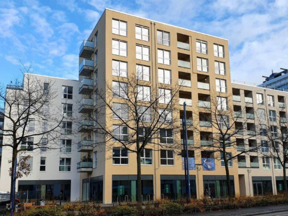 Der Wohnbereich wurde mit grauem Teppichbelag ausgelegt. Alle Wände und Decken sind weiß gestrichen. Im Küchenbereich befindet sich eine Partyküche, die dem Mieter unentgeltich zur Verfügung gestellt wird (ohne Kühlschrank). Das Tageslichtduschbad ist weiß gefliest.